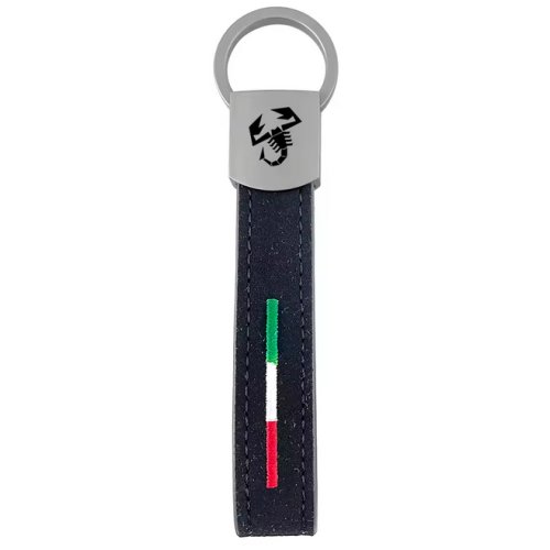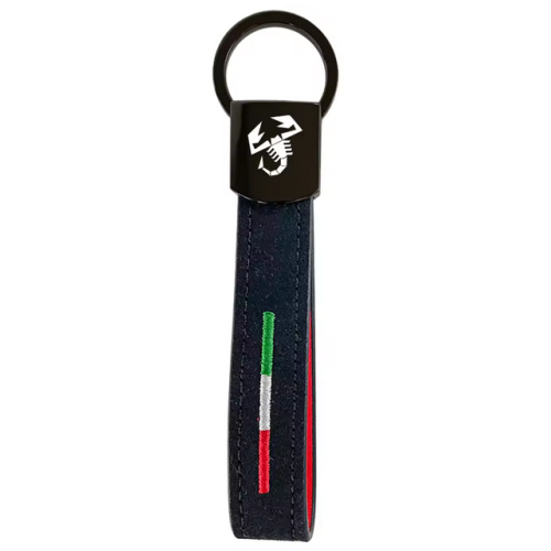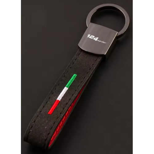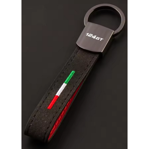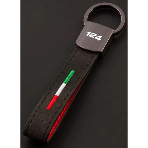 Gunmetal, alcantara & leather lanyard keyring with either 124 Spider or Abarth logo and Italian tricolore colours.